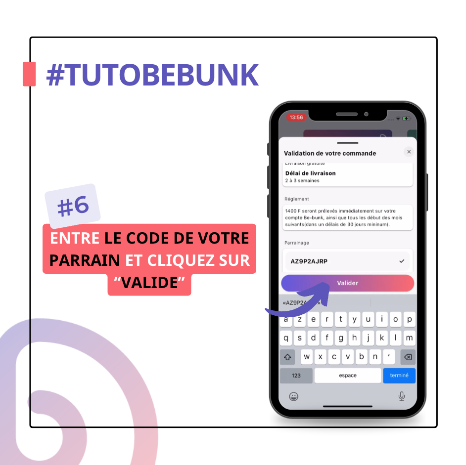 6- Entrez le code de votre parrain et cliquez sur « Valider »