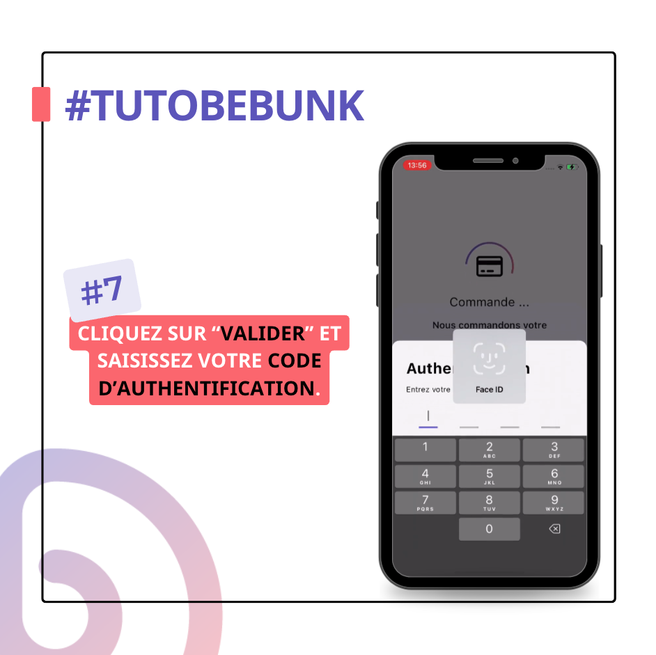 Validez et saisissez votre code d’authentification pour confirmer la commande de votre carte.