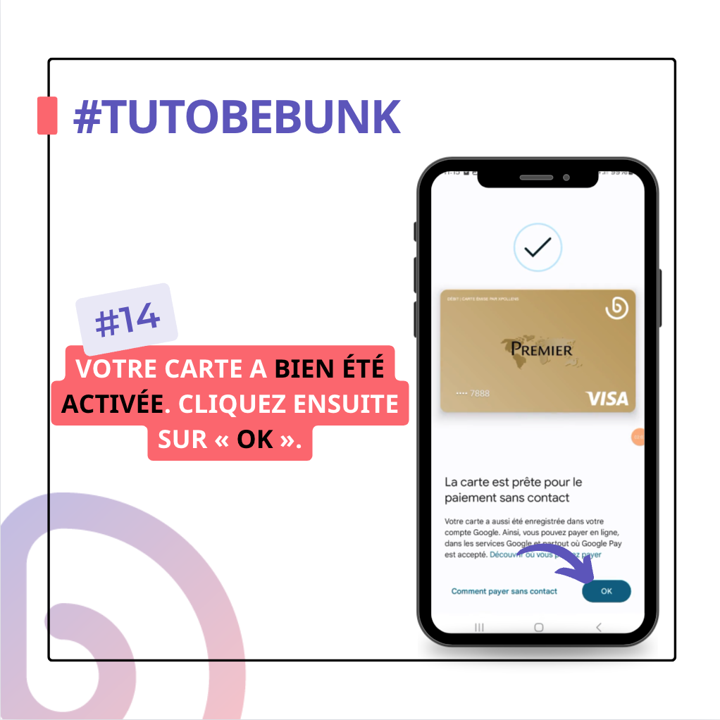 Nous espérons que ce tutoriel vous a aidé à enregistrer votre carte Be-bunk sur Google Pay.