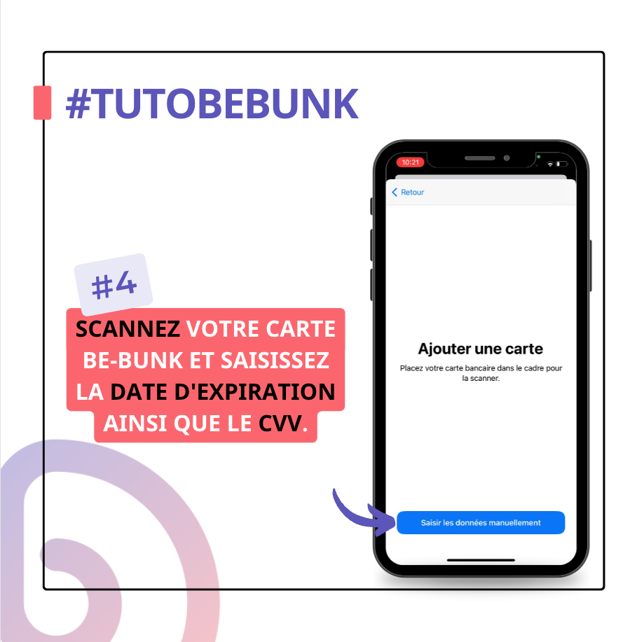 4. Scannez votre carte Be-bunk et saisissez la date d’expiration ainsi que le CVV :