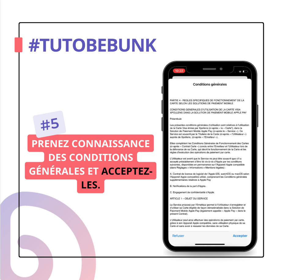 Lisez attentivement les conditions générales d’Apple Pay et acceptez-les si vous êtes d’accord.