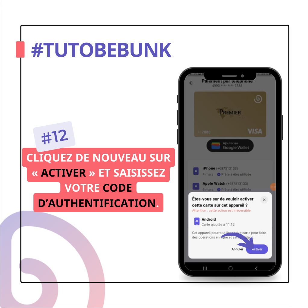 12- Cliquez de nouveau sur « Activer » et saisissez votre code d’authentification.