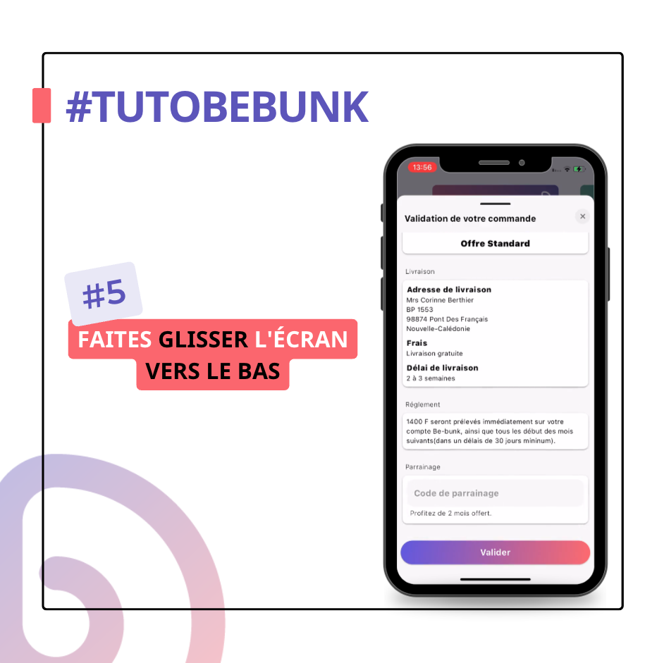 6- Entrez le code de votre parrain et cliquez sur « Valider »